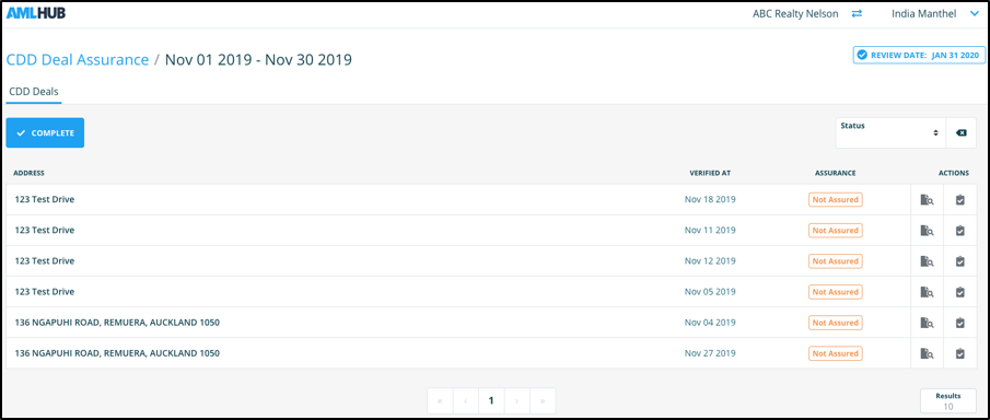 Completing an assurance period can be done through the ‘CDD Deal Assurance’ section of the AMLHub desktop.